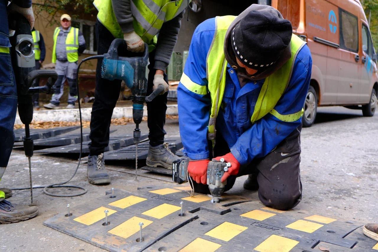 Администрация Астрахани продолжает работу по установке комплексных пешеходных переходов рядом со школами и детскими садами областного центра. Специалисты устанавливают искусственные неровности, леерное ограждение, знаки и светофоры. Накануне дорожники работали на улице Николая Ветошникова в микрорайоне Х лет Октября. По этой дороге родители с детьми ежедневно добираются в детский сад №77. Ранее «лежачие полицейские» появились на улицах Пушкина, Бабушкина, Новороссийской, Коммунистической, Нововосточной, на участке улицы Звездной, в переулках Грановском и Комсомольском. Совсем скоро к аналогичным работам приступят на площади Заводской и проспекте Бумажников. Сдать объекты планируют до конца октября. Продолжается и установка леерного ограждения. Его смонтировали на улицах Нововосточной, Новороссийской, Звездной. И работы не планируют останавливать.