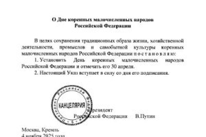 Президент России Владимир Путин подписал указы о введении двух новых праздников: Дня коренных малочисленных народов и Дня языков народов страны. Эти документы опубликованы на официальном ресурсе правовой информации. Отныне День коренных малочисленных народов России будет отмечаться ежегодно 30 апреля, а День языков народов страны - 8 сентября. Инициатива учреждения последнего была озвучена Путиным в ходе июньского заседания Совета по вопросам реализации государственной политики относительно поддержки русского языка и национальных языков. В настоящее время в нашей стране признаны свыше 270 языков и диалектов, а численность представителей коренных малочисленных народов составляет порядка 315 тысяч человек. А сегодня россияне отмечают День народного единства - праздник, учрежденный по предложению Межрелигиозного совета России. Его впервые отпраздновали 4 ноября 2005 года, и с тех пор эта дата стала официальным государственным праздником и выходным днем.