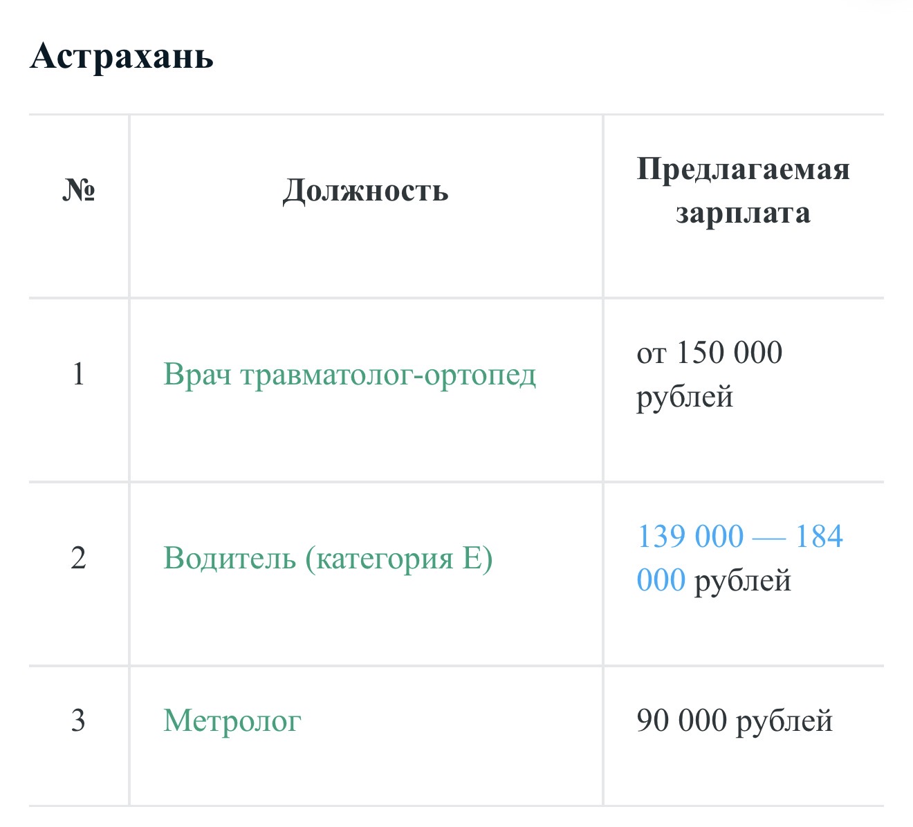 Сервис по поиску работы SuperJob проанализировали 27 тысяч вакансий в городах, численность населения которых составляет от 500 тысяч до 1 миллиона человек, и отобрали лучшие предложения ноября. В ноябре текущего года в Астрахани больше всего готовы платить врачу травматологу-ортопеду. Естественно, ищут сотрудника с высшим медицинским образованием и опытом работы от трех лет. Компания предлагает зарплату от 150 тысяч рублей, а иногородним также предоставят жилье. На втором месте оказалась вакансия водителя. Зарплата - 184 тысячи рублей. Кандидат должен иметь водительские права категории «С» и «Е». На третьем месте - метролог с зарплатой 90 тысяч рублей. В рейтинг также вошли вакансии менеджера по продажам с зарплатой от 100 тысяч рублей и экономиста планово-экономического отдела с зарплатой до 130 тысяч рублей. В Иркутске, Владивостоке и Набережных Челнах в топе зарплатных предложений ноября оказались врачи. Всему виной дефицит кадров. И, судя по всему, даже высокие зарплаты не привлекают специалистов. В вышеперечисленных городах также предлагают зарплаты от 100 тысяч рублей для специалистов инженерных позиций. В Ижевске в топ вошла вакансия руководителя Управления капитального строительства Удмуртии, в Оренбурге - директора гипермаркета, в Рязани - регионального менеджера. Так что, везде ситуация, как можно заметить, кардинально отличается. Стала известна среднемесячная зарплата астраханцев в 2025 году