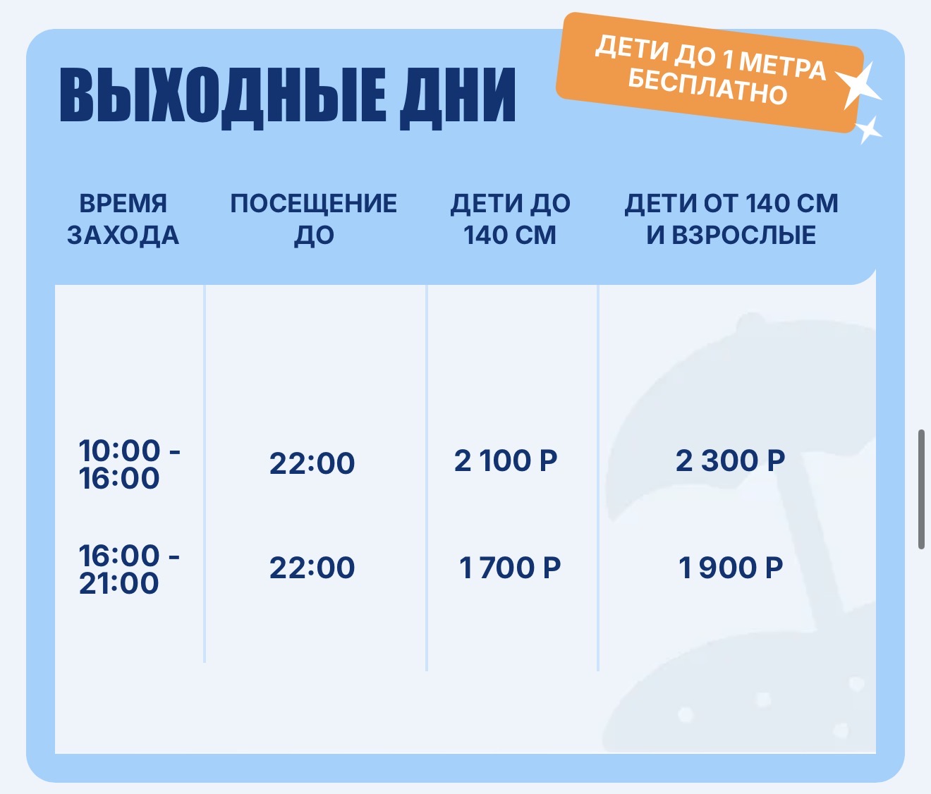 В 2025 году в Астрахани пройдет долгожданное открытие аквапарка «Жемчужина», который расположен возле микрорайона Бабаевский. На данный момент известно, что площадь объекта составляет 8 тысяч квадратных метров. Астраханцам обещают более 10 видов водных горок. Одновременно находиться в аквапарке смогут до 500 человек. А сейчас на официальном сайте организации также опубликовали актуальный прейскурант. Так, полный будний день в аквапарке, с 10:00-14:00 до 22:00, будет стоить 2100 рублей, детям ниже 140 сантиметров полагается скидка в размере 200 рублей. Чем меньше времени будет проведено в аквапарке, тем, соответственно, дешевле. А вот в выходные дни цены увеличиваются на 200 рублей. Детям, рост которых менее 1 метра, можно купаться бесплатно. Подробнее с ценами предлагаем ознакомиться ниже: В стоимость билета включен доступ ко всем аттракционам комплекса: водным горкам, бассейнам, зоне спа (сауны, гидромассажный бассейн). Приобрести билеты можно в кассе аквапарка. Что касается правил помещения, то они следующие: Несовершеннолетние (до 18 лет) допускаются в аквапарк только в сопровождении совершеннолетних. 1 взрослый может сопровождать не более двух детей в возрасте до 5 лет. 1 взрослый может сопровождать группу не более 4 детей в возрасте от 5 до 18 лет, двое из которых достигли 14 лет. Запрещено посещать аквапарк лицам с инфекционными, острыми вирусными, контагиозными кожными и венерическими, грибковыми заболеваниями, а также с открытыми ранами, конъюктивитом и гельминтозом. Также не пропустят в аквапарк и людей в состоянии алкогольного или наркотического опьянения. Не получится пронести и еду. В новом астраханском аквапарке провели тест-драйв горок