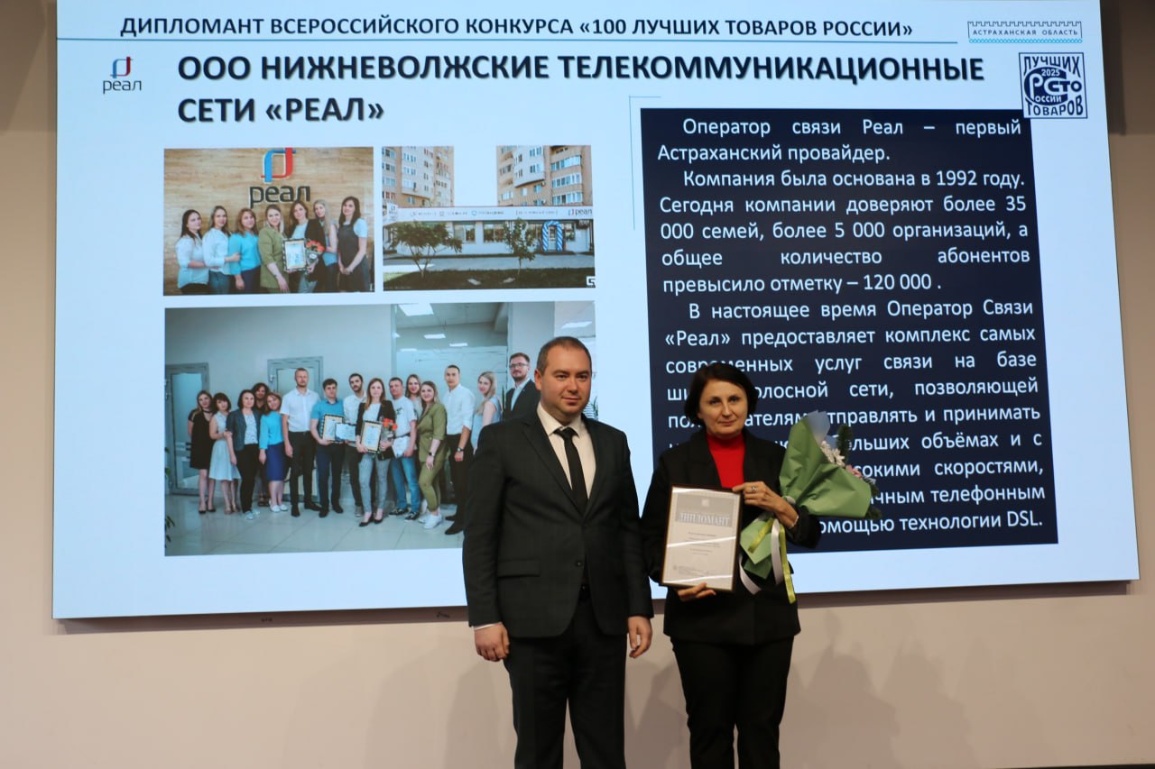 23 декабря оператор связи «РЕАЛ» получил очередную награду, подтверждающую высокое качество услуг. В зале «Атриум» ГАОУ АО ДПО «Институт развития образования» прошла церемония награждения победителей престижного всероссийского конкурса «100 лучших товаров России». Компания РЕАЛ стала дипломантом всероссийского конкурса «100 лучших товаров России». Диплом вручили главному бухгалтеру Федоренко Анне. Также высокую оценку экспертов получила работа руководителя абонентского отдела Антонины Вагиной, которой был вручён почётный знак «Отличник качества». Конкурс «100 лучших товаров России», данные для которого предоставляет Росстандарт, уже более 25 лет является одним из ключевых инструментов поддержки качества на российском рынке. «Наша компания работает в Астрахани более 33 лет, и для нас эта награда — важный сигнал, что мы движемся в верном направлении. Наша цель — постоянное повышение качества услуг и модернизация сетей. От всей души благодарю команду за этот общий успех», — отметил генеральный директор РЕАЛ Владимир Лимонов.