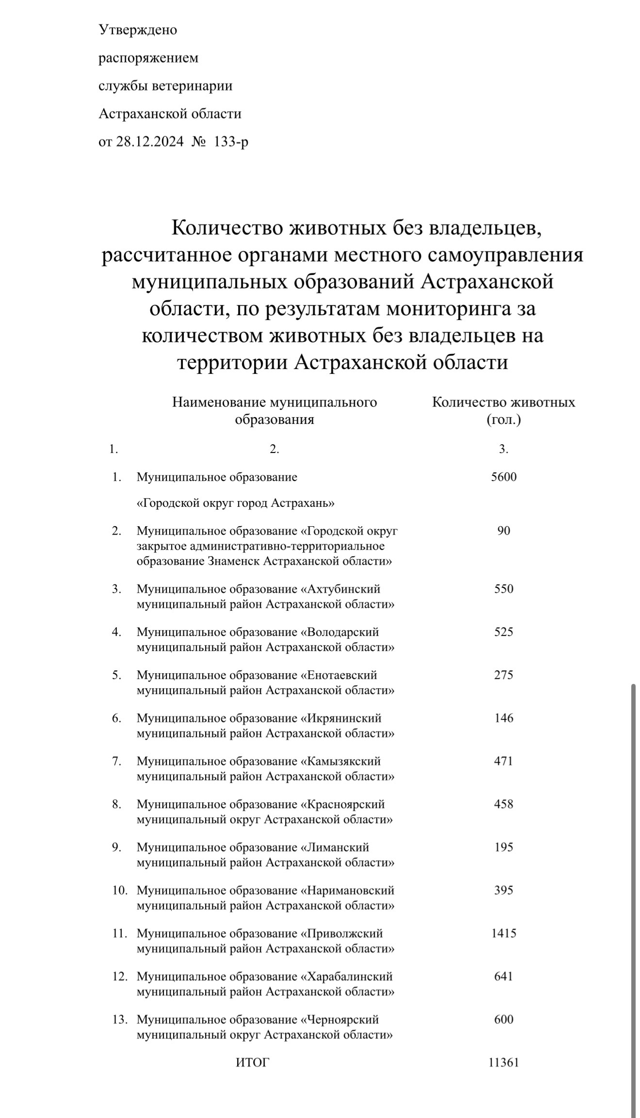 Служба ветеринарии Астраханской области опубликовала документ с данными о численности бездомных собак в регионе по результатам мониторинга на конец 2025 года. Ситуация в регионе сложилась достаточно странная: где-то собак к концу года стало меньше, а где-то их численность возросла сразу в два раза. Вот такая статистика сложилась по данным на конец 2025 года: А вот такие данные были актуальными на май 2025 года: Ниже представлено, как обстояли дела год назад, в декабре 2024 года: Анализ Начнем с областного центра. По данным на декабрь 2025 года, в Астрахани числится 4,9 тысячи собак, в конце весны бродячих животных было в два раза больше - 8,9 тысячи. А вот год назад посчитать удалось 5,6 тысячи собак. Уменьшилось количество «хвостиков» и в Красноярском, Приволжском, Харабалинском районах области. Ситуация с животными больше похожа на волну: то их больше, то меньше. Радует одно - количество собак действительно местами сокращается. Хотя нападения, увы, не прекратились. А вот в Енотаевском, Лиманском, Черноярском, Володарском, Икрянинском, Наримановском районах, а также в ЗАТО Знаменск количество животных (по сравнению декабря с маем 2025 года) только увеличилось. Еще один интересный вывод: в Ахтубинском и Камызякском районах животных стало едва ли не в два раза больше. Так что, где-то количество животных уменьшается, где-то увеличивается. Однако общая картина в регионе вряд ли кардинально меняется: по данным на декабрь 2025 года в Астраханской области зафиксировали 16 тысяч собак, а в мае - 18 тысяч особей. И это при том, что на отлов «хвостиков» выделяются немалые деньги. В Астрахани резко увеличилось количество собак: с чем это связано?