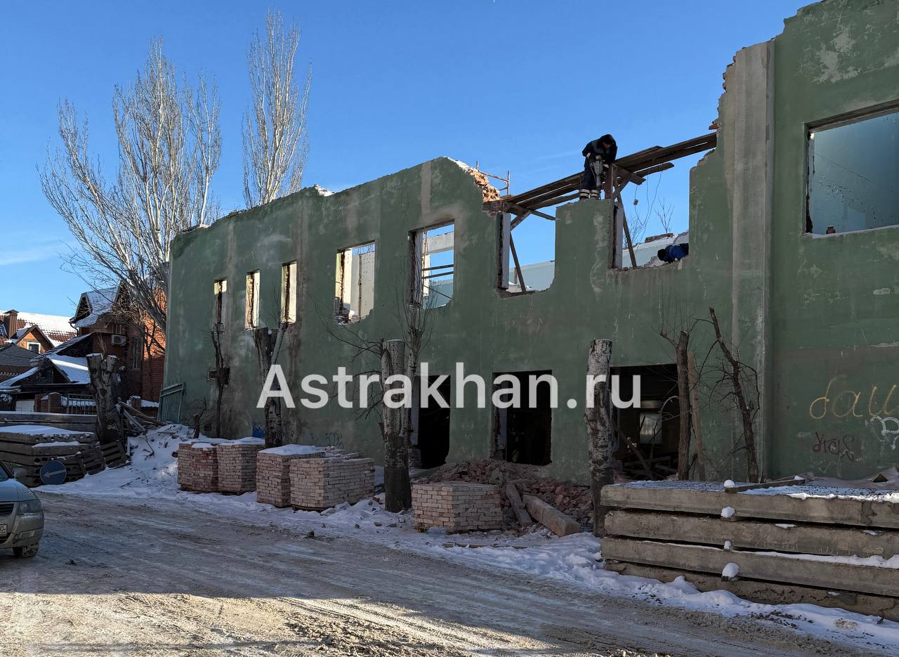 В центре Астрахани исчезает еще один фрагмент городской истории. На улице Кирова начался разбор здания, которое долгие годы было частью медицинского комплекса Обкомовской больницы. Сегодня от бывшего корпуса остаются лишь обнаженные стены, строительный мусор и штабеля кирпича - объект постепенно уходит в прошлое. Речь идет не об основном историческом здании, а об одном из вспомогательных корпусов медицинского комплекса по адресу улица Кирова, 39/1. В последние годы он использовался как складское помещение. Основное здание Обкомовской больницы - то, где сегодня располагается Новая поликлиника (улица Кирова, 39) - имеет значительно более глубокую историю. В дореволюционный период это был дом Мамаджанова Макара Давидовича. Позднее здание было приспособлено под нужды медицины и стало главным корпусом Обкомовской больницы. Сегодня оно является объектом культурного наследия и охраняется как памятник архитектуры. Медицинский комплекс Обкомовской больницы включал несколько зданий. Основной корпус находился именно в историческом доме Мамаджанова, а дополнительные строения возводились отдельно. Разбираемый в настоящее время корпус не являлся госпитальным - госпитальный корпус располагался через галерею. Демонтируемое здание использовалось в качестве лабораторного корпуса, где размещались вспомогательные и исследовательские помещения. В последние годы здание утратило медицинское назначение и эксплуатировалось преимущественно как склад. Его техническое состояние вызывало вопросы, что в итоге и привело к решению о разборе строения. Судя по текущему состоянию объекта, работы находятся в активной фазе. К настоящему моменту демонтирована кровля, частично разобраны перекрытия и верхние участки стен. Оконные проемы остались без рам, а внутри видны временные опоры и фрагменты перекрытий. Рядом со зданием складированы кирпичи и строительные материалы, на площадке работают рабочие, ведущие поэтапный демонтаж. Фасад корпуса сохранен лишь частично - значительная часть кирпичной кладки уже разобрана.