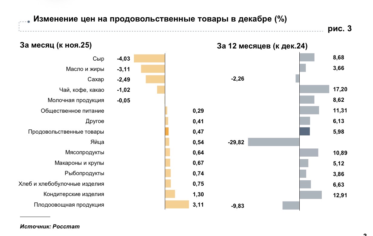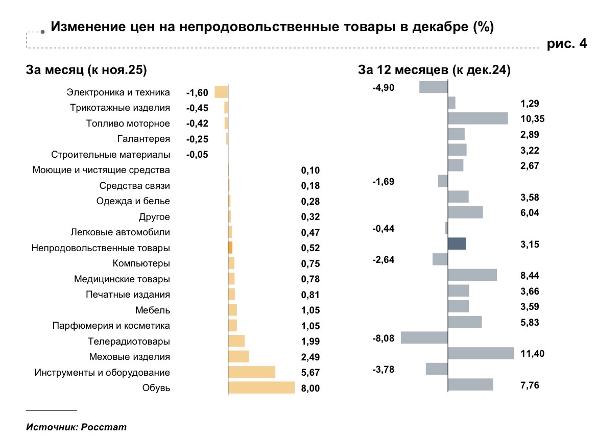 В декабре 2025 года цены в Астраханской области выросли на 0,41% к ноябрю. Годовая инфляция, при этом, замедлилась и составила 5,25%. Это ниже, чем в целом по стране. Заметнее всего в декабре выросли цены на непродовольственные товары. Так, в цене выросла теплая обувь. Это позволило продавцам перенести в цены возросшие расходы на логистику, оплату труда и аренду помещений. Подорожали оборудование, мебель и инструменты. При этом, снизились цены на электронику и бытовую химию. Магазины в преддверии новогодних праздников объявляли скидки на стиральные машины, пылесосы. Продовольственные товары подорожали менее ощутимо. На прилавках преобладали огурцы, сладкий перец, выращенные в теплицах. Из-за затрат на отопление и свет плодоовощная продукция в декабре сезонно подорожала. Вырос спрос и на овощи открытого грунта - свеклу, картофель и морковь. Но есть и хорошая тенденция - за год плодоовощная продукция снизилась в цене на 9,83%. Подорожали и кондитерские изделия. В то же время уменьшились цены на сыр и сливочное масло. Их себестоимость снизилась, так как молоко подешевело в результате расширения его предложения. Также в декабре выросли цены на бытовые услуги. Это связано с ростом издержек поставщиков на закупку сырья и инструментов, обслуживание оборудования, аренду помещений и оплату труда. Подорожало посещение кинотеатров из-за роста расходов на зарплату и аренду помещений. Но снизились цены на услуги в сфере зарубежного туризма. Также, в связи с окончанием сезона высокого спроса, наблюдалось снижение цен на поездки в Египет, Турцию, ОАЭ. Цены в Астраханской области в декабре выросли на 0,41%, в целом по России – на 0,32%. Больше, чем в стране, в регионе подорожали обувь, инструменты и оборудование. Годовая инфляция в области замедлилась и стала ниже, чем в стране. За 12 месяцев подорожали продовольственные и непродовольственные товары больше, чем в целом по стране. А вот цены на услуги в регионе за год выросли меньше, чем в среднем по России. Инфографика: Банк России