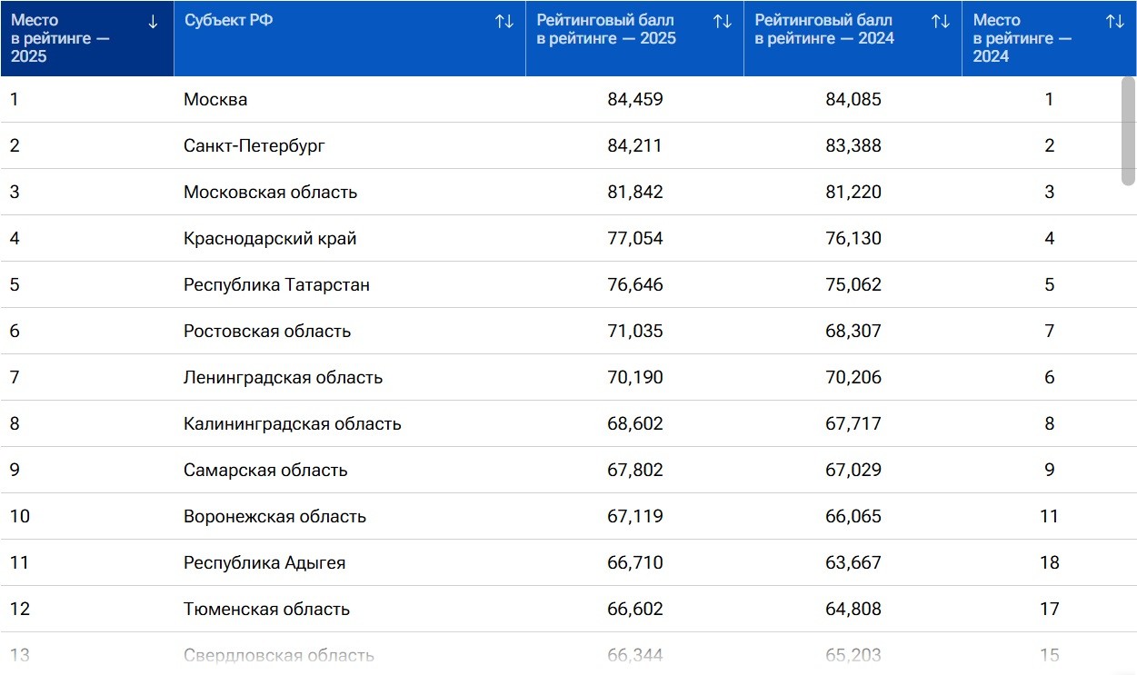 Пока столицы традиционно делят вершину рейтинга, Астраханская область тихо сдвинулась вниз. Минус две позиции за год - и регион теперь занимает 58 место в общероссийском списке по качеству жизни. Это не конец списка, но и до лидеров дистанция заметная. Согласно Рейтингу регионов по качеству жизни, составленного специалистами РИА Новости, Астраханская область оказалась в «золотой середине» списка. Год назад позиции были немного выше, однако по итогам нового исследования регион уступил две строчки, набрав 53,032 балла. Лидеры остаются неизменными: Москва, Санкт-Петербург и Московская область. Их интегральный балл превышает 80 из 100 возможных, и эта тройка удерживает первенство уже много лет, значительно опережая остальные субъекты. Четвертое место занимает Краснодарский край с результатом чуть выше 77 баллов. В десятку сильнейших также вошли Республика Татарстан, Ростовская область, Ленинградская область, Калининградская область, Самарская область и Воронежская область. Рейтинг строился на основе 66 индикаторов и более 100 показателей, объединенных в 11 ключевых групп. Оценивались доходы населения, рынок труда, жилищные условия, безопасность, демография, экология и климат, здравоохранение и образование, развитие социальной инфраструктуры, уровень экономики и малого бизнеса, а также транспортная освоенность территории. Для Астраханской области снижение на две строчки - не критично, но это повод внимательно посмотреть, какие сферы требуют ускорения.