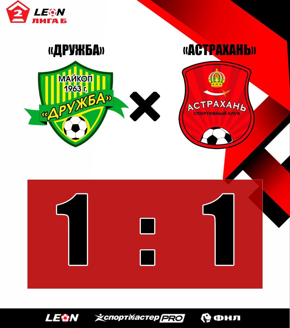 СК «Астрахань», выступающий во Второй лиге Б, провел очередной матч Первенства России. Его соперником стал старожил российских соревнований - майкопская «Дружба». В турнирной таблице майкопчан и астраханцев пока разделяют всего два очка и три места. Стало быть, матч между ними ожидался упорным. Первым опасный момент создали гости - примерно на 18-й минуте Илья Левченков мог открыть счет, но вратарь «Дружбы» был начеку. Этот момент как бы подхлестнул хозяев поля, и они стали играть активнее и угрожать воротам соперника. Если бы не наш вратарь Анатолий Красильников, то счет мог быть уже в первом тайме крупным, однако страж ворот трижды выручил свою команду. Но один раз адыгейская команда все же отличилась до перерыва, минут за пять до конца - точный удар нанес Аскер Делок. В самом начале второго тайма, на 47-й минуте, наставник волжан Андраник Бабаян провел замену, выпустив на поле Илью Предеуса. И замена оказалась прямо «в яблочко» - буквально через несколько секунд астраханец вышел один на один с вратарем и отправил мяч точно в ворота. Так счет стал 1:1. Майкопчанам явно такой поворот событий не понравился, и они устремились вперед. Пару раз «Дружба» была очень близка к голу, но блестяще играл вратарь СК «Астрахань». Во многом его заслуга в том, что все-таки одно очко его команде удалось увезти из столицы Адыгеи. После этой ничьи дружина Андраника Бабаяна делит шестое место с черкесским «Нартом». Напомним, что шесть лучших команд Первой группы продолжат борьбу на втором этапе за единственную путевку в Дивизион «Серебро». Следующий матч пройдет 9 августа в Астрахани на стадионе имени А.И. Колосова, соперником «горожан» будет футбольный клуб «Севастополь». Начало матча в 18:00.