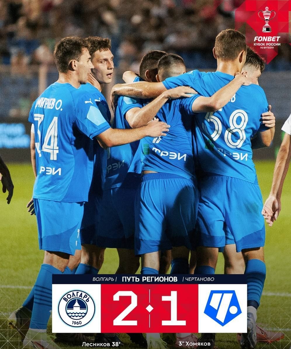 Соперником астраханских футболистов стала московская команда «Чертаново», выступающая во второй группе Второй лиги Б. Важности этому матчу добавлял тот факт, что игра была показана в прямом эфире на федеральном канале «Матч ТВ». Несколько лет назад этот столичный клуб, основу которого составляли воспитанники одной из ведущих футбольных школ не только Москвы, но и России, выступал в Первой лиге Первенства России и показывал неплохие результаты. Ряд игроков из «Чертаново» перешли в клубы Российской премьер-лиги, например, Наиль Умяров («Спартак»), Максим Глушенков («Зенит»), Антон Зиньковский («Крылья Советов»). Сейчас чертановцы выступают во Второй лиге, но по-прежнему являются боевой, неуступчивой командой. Уже на третьей минуте гости открыли счет. Удар Антона Хомякова метров с 12 оказался сложным для вратаря волжан, на табло Центрального стадиона зажглись весьма неприятные цифры - 0:1. Хозяев поля такой поворот событий явно не устраивал, и они пошли вперед. Однако оборона «Чертаново» была труднопроходимой, и поэтому, имея территориальное преимущество, волжане не так часто били по воротам. Более получаса понадобилось на то, чтобы сравнять счет. Сделал это не кто иной, как воспитанник астраханского футбола Дмитрий Лесников. Хотя первый удар нападающего вратарь москвичей парировал, но после повторного удара Лесникова трибуны «Центрального» взревели от восторга - 1:1! Гол вдохновил волжан и последние минуты тайма прошли с их явным преимуществом, но до перерыва счет на табло остался неизменным. Зато во втором тайме астраханцы вышли вперед благодаря точному удару головой Ильи Зуева. Моменты после этого все равно возникали в большей степени у ворот гостей, но счет 2:1 оказался итоговым. «Волгарь» показал хороший футбол, который понравился более шести тысячам болельщиков, пришедшим этим вечером на Центральный стадион. В следующем круге «Волгарь» в сентябре встретится с пензенским «Зенитом», который также в родных стенах обыграл еще один московский клуб - «Строгино» со счетом 1:0. А в ближайшее время дружина Юрия Юхневича сыграет в матче Первенства России - 24 августа в Пятигорске с местным «Машуком-КМВ».