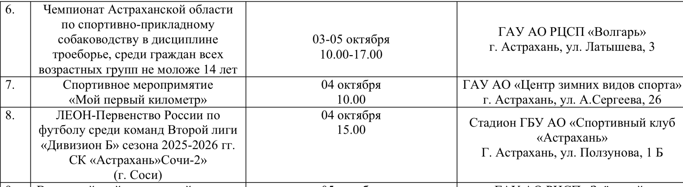 На новой неделе в Астраханской области пройдет 11 спортивных мероприятий