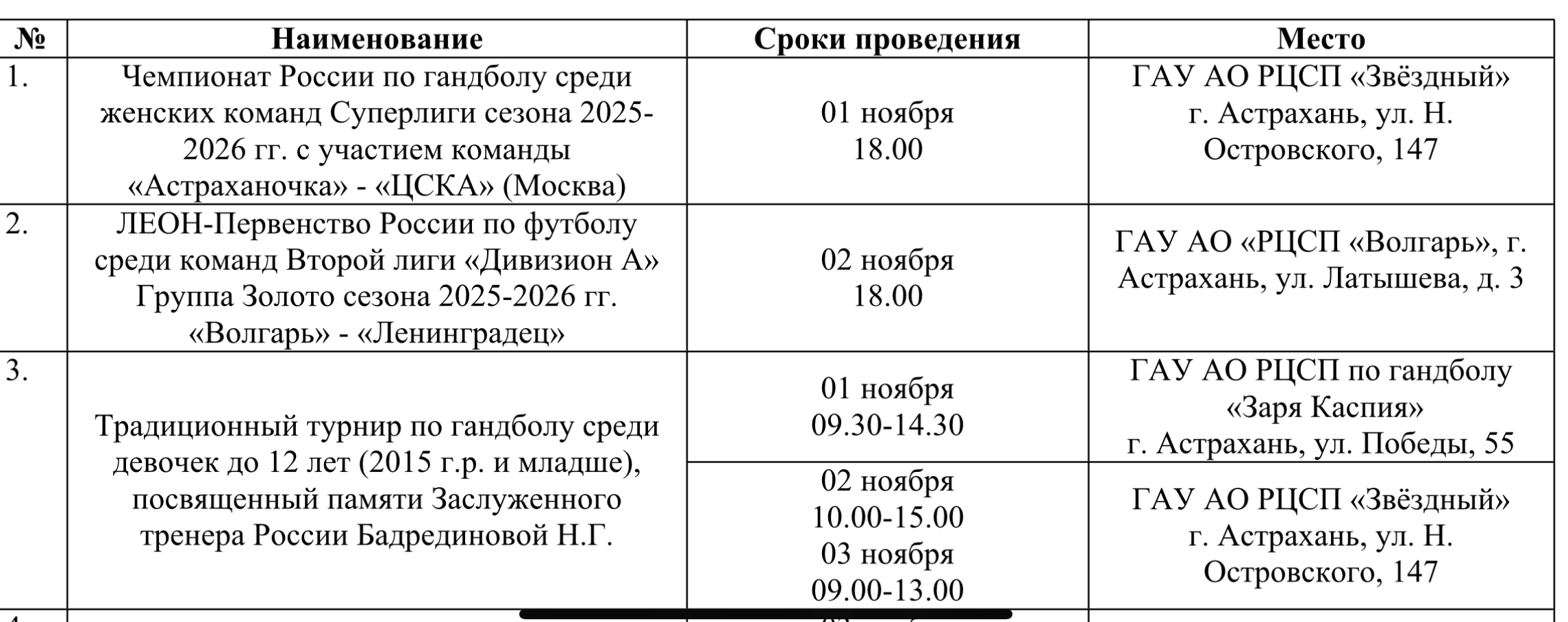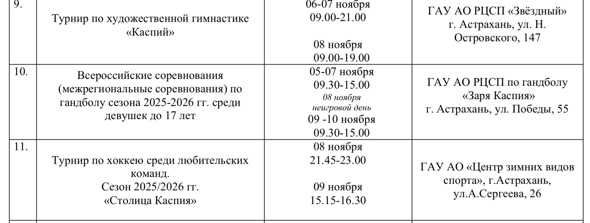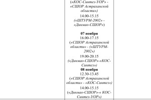 В Министерстве физической культуры и спорта подготовили план-график мероприятий, которые пройдут в регионе с 3 по 9 ноября. Астраханцев и гостей области приглашают на турнир по гандболу среди девочек, первенство России по футболу, предварительный этап Чемпионата России по водному поло, всероссийский фестиваль по хоккею и многое другое: