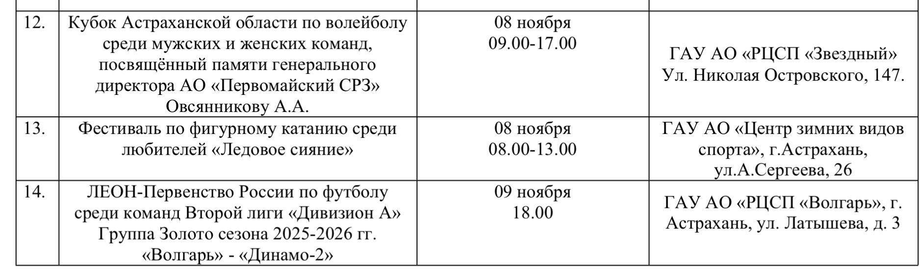 На новой неделе для астраханцев проведут массу интересных спортивных мероприятий